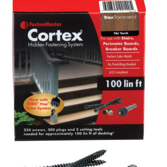 FastenMaster’s Cortex® Concealed Fastening System combines the strength of a face-fastened connection with the beauty of a hidden fastener and is available for Trex decking and PVC trim. Cortex plugs are created from the same material as deck boards or PVC, creating a perfect match every time. Certain colours are now available in Collated Strips, to help you save time and improve efficiency.